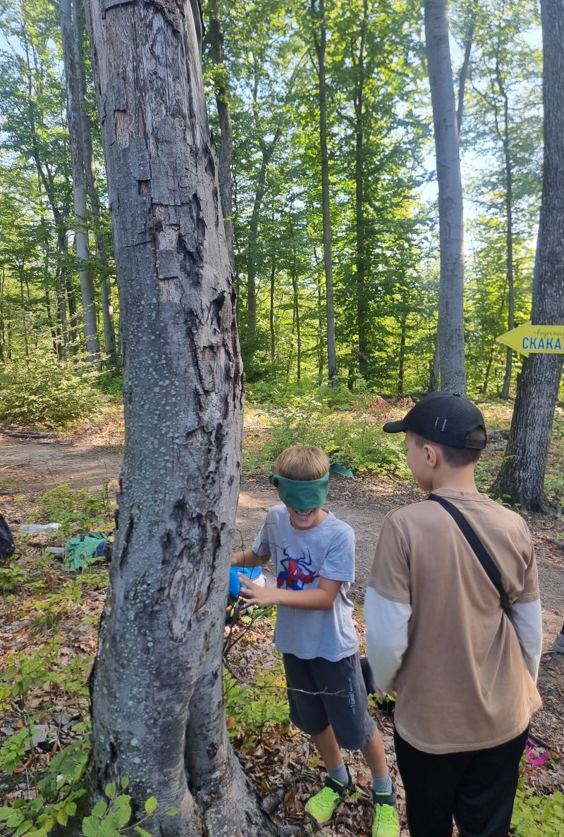 Маршрут пролягав крізь осінній ліс і став справжнім дослідженням: юні природолюби вивчали кору дерев і її відбитки, торкалися м’якого моху, слухали струмки та дізнавалися, як ліси зберігають і очищують воду. Діти також знайомилися з мешканцями лісу та створювали власну «галерею тіней», відкриваючи для себе багатство довкілля у нових деталях.