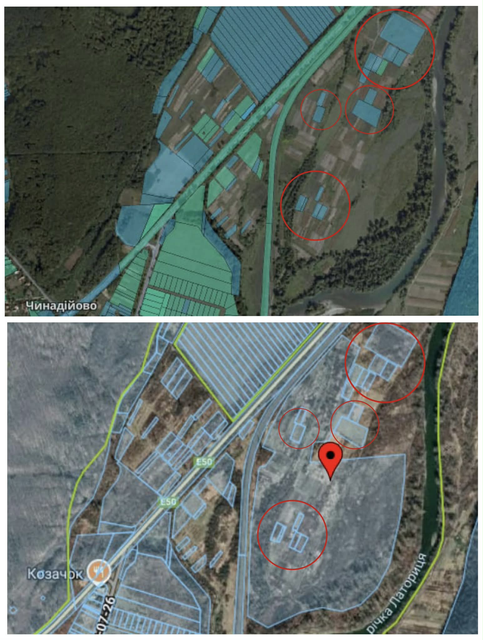 Земельні ділянки, на яких знаходиться індустріальний парк «Тячів» площею 11 та 50 гектарів, інформацію щодо яких надала Тячівська міська рада, у базі Державного земельного кадастру станом на 20.12.2025 року – відсутні. З доступних на сьогодні кадастрових даних відомо, що їх оточують земельні ділянки сільськогосподарського призначення. Тож, цілком ймовірно, що у міській раді проігнорували дійсне цільове призначення землі, а, натомість, зробили його таким, як потрібно «інвестору».