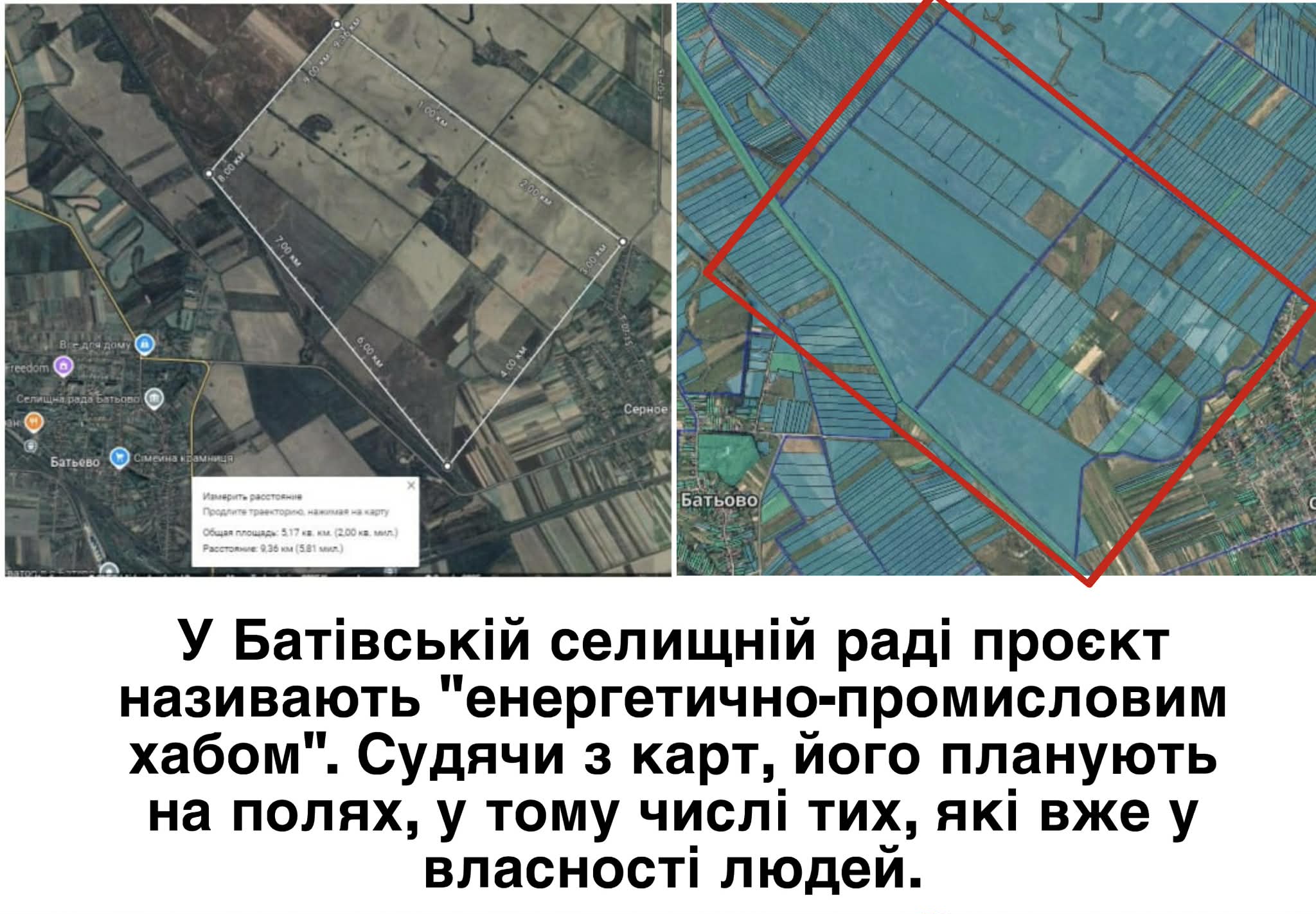 До цього слід додати, що у селі Серне сусідньої Батівської громади під «енергетично-промисловий хаб», що, скоріш за все, є одним і тим самим проєктом «Воднева долина Закарпаття», розглядають шматок землі площею 5,17 кв.км. Там кілька ділянок комунальної форми власності площею 242 га, а все інше – приватні наділи людей.