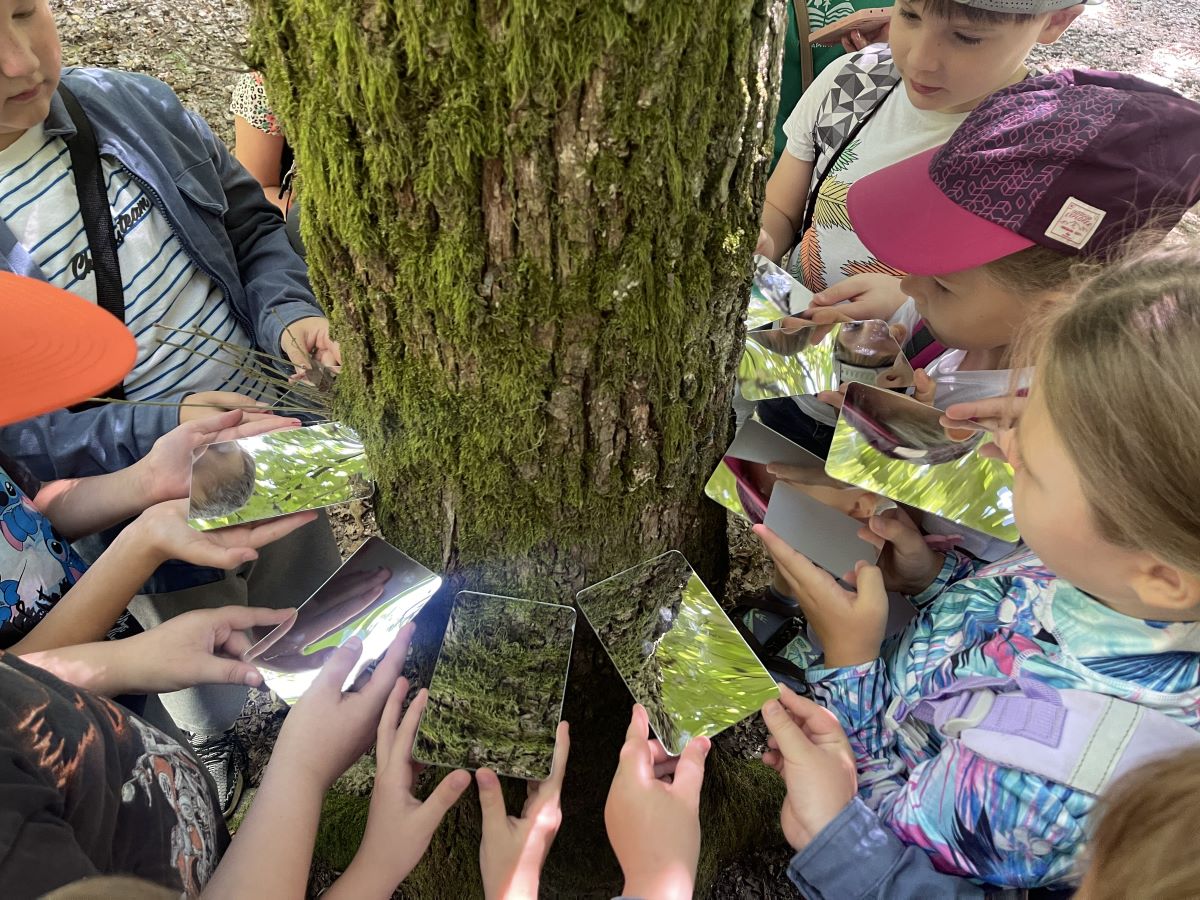 Учасники досліджують ліс через дзеркала, змінюючи звичний спосіб сприйняття простору.