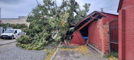 Сьогодні вранці на вулиці Братів Зейканів у Виноградові потужний порив вітру повалив велике дерево. Воно впало на проїжджу частину, частково перекривши рух транспорту, та пошкодило лінію електропередач, через що залишилася без світла частина вулиці. На місці працюють аварійні служби: вони розчищають дорогу та усувають наслідки падіння дерева, а енергетики відновлюють електропостачання.