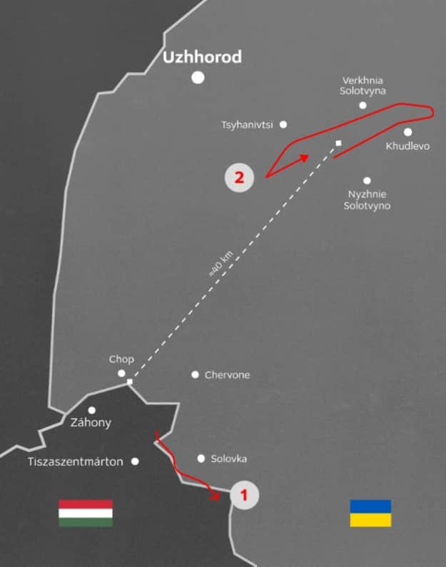 Міністр опублікував зображення, яке, за його словами, відображає точний маршрут вчорашнього вторгнення дрона з угорщини в повітряний простір України. Сибіга зазначив, що робить публікацію "для сліпих угорських посадовців".