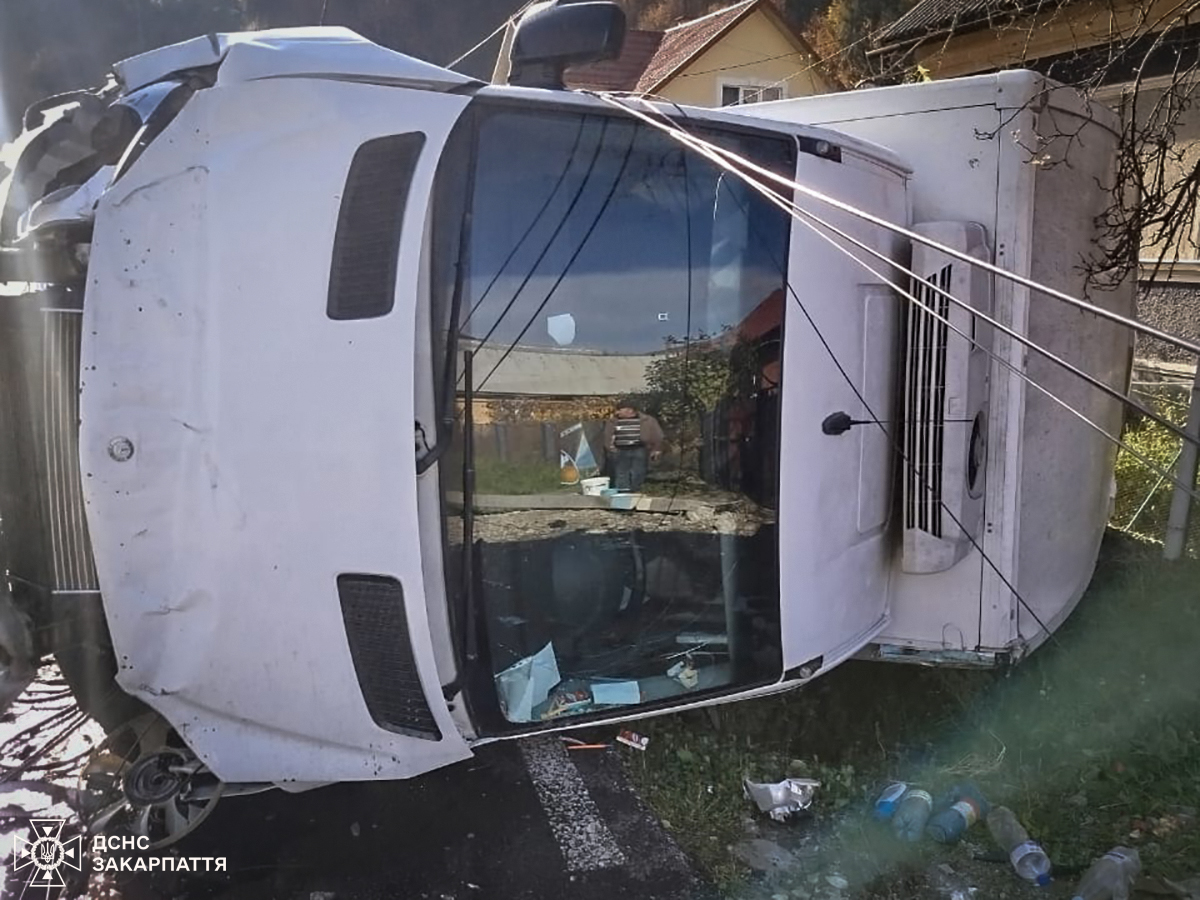 Вчора, 22 жовтня, о 11:42 до Служби порятунку надійшло повідомлення про дорожньо-транспортну пригоду в селі Костилівка Рахівського району. Як з’ясувалося, 21-річний мешканець Мукачева, керуючи автомобілем Mercedes-Benz, не впорався з керуванням, зіткнувся з електричним стовпом, після чого транспортний засіб перекинувся на бік і з’їхав у кювет. Водій самостійно вибрався з авто ще до прибуття рятувальників. Медики госпіталізували його до Рахівської районної лікарні. Фахівці ДСНС поставили автомобіль на колеса, відбуксирували його на узбіччя та змили дорожнє покриття від пально-мастильних матеріалів і уламків.