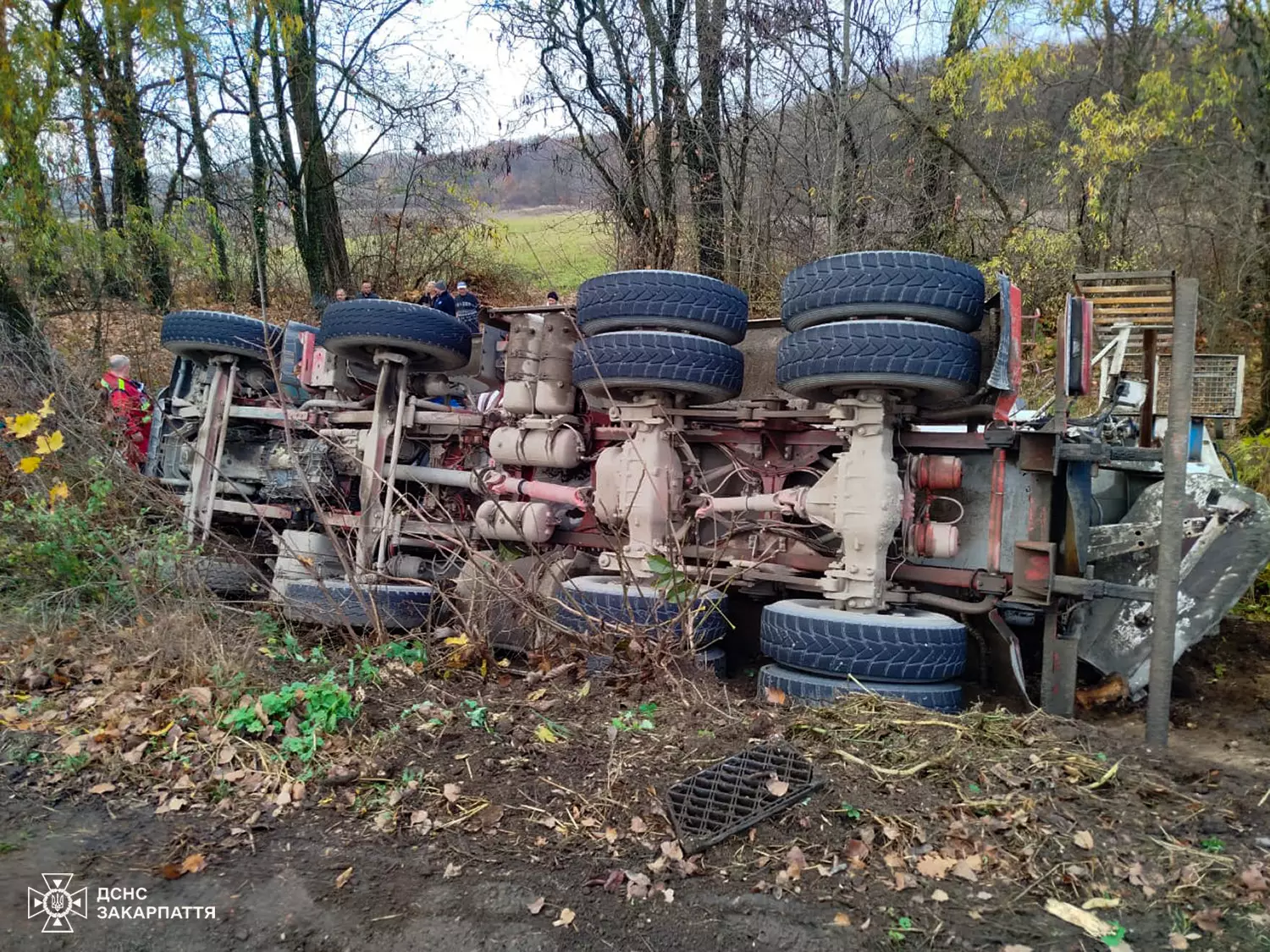 На трасі «Берегово–Мукачево» бетонозмішувач перекинувся у кювет (ФОТО)