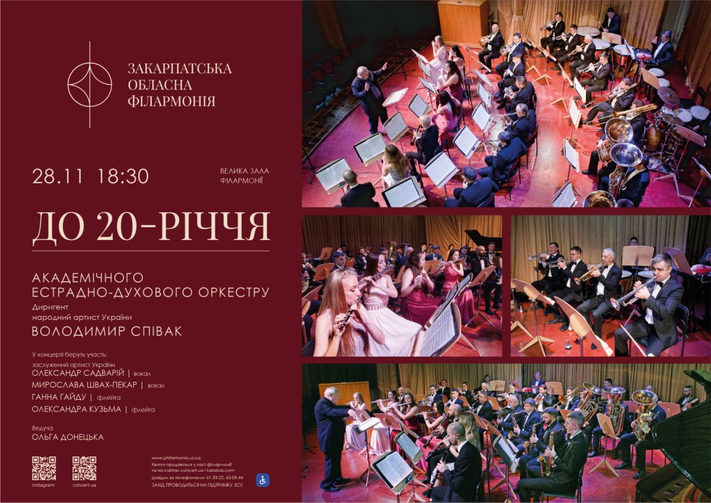 28 листопада артисти оркестру запрошують розділити з ними урочистість ювілею й відчути магію музики, святкову атмосферу і могутнє звучання духових інструментів.