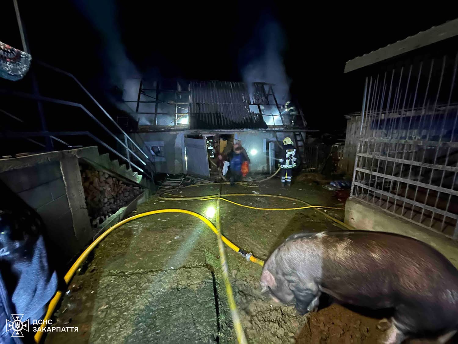 У селі Верхня Визниця вночі собака врятував порося та подвір’я господарів від пожежі. Інцидент стався на вулиці Незалежності. Собака, що належить власникам домоволодіння, раптово почав голосно гавкати, привернувши увагу господарів. Люди вийшли на подвір’я, щоб перевірити, що сталося, і виявили загорання сіна поруч із господарськими спорудами. Їхня оперативна реакція допомогла запобігти поширенню вогню та врятувала порося, яке перебувало неподалік. До прибуття рятувальників власники самостійно стримували полум’я за допомогою поливального шланга та вогнегасника. Подальшу ліквідацію пожежі здійснили вогнеборці Мукачева. На повне гасіння загоряння їм знадобилося трохи більше ніж пів години.