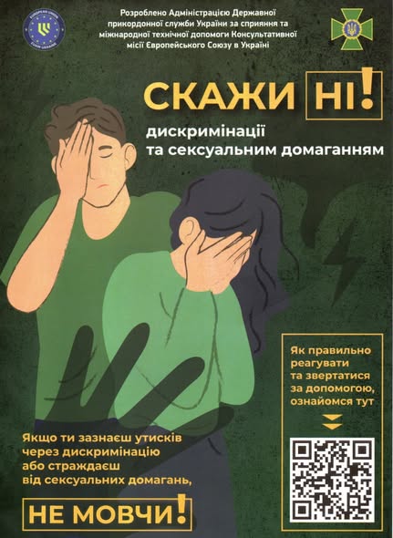 Прикордонники - за дотримання законності, за гендерну рівність та проти насилля. Державна прикордонна служба України забезпечує реалізацію єдиної державної політики, спрямованої на досягнення рівних прав та можливостей жінок і чоловіків, запобігання та протидії дискримінації за ознакою статті.