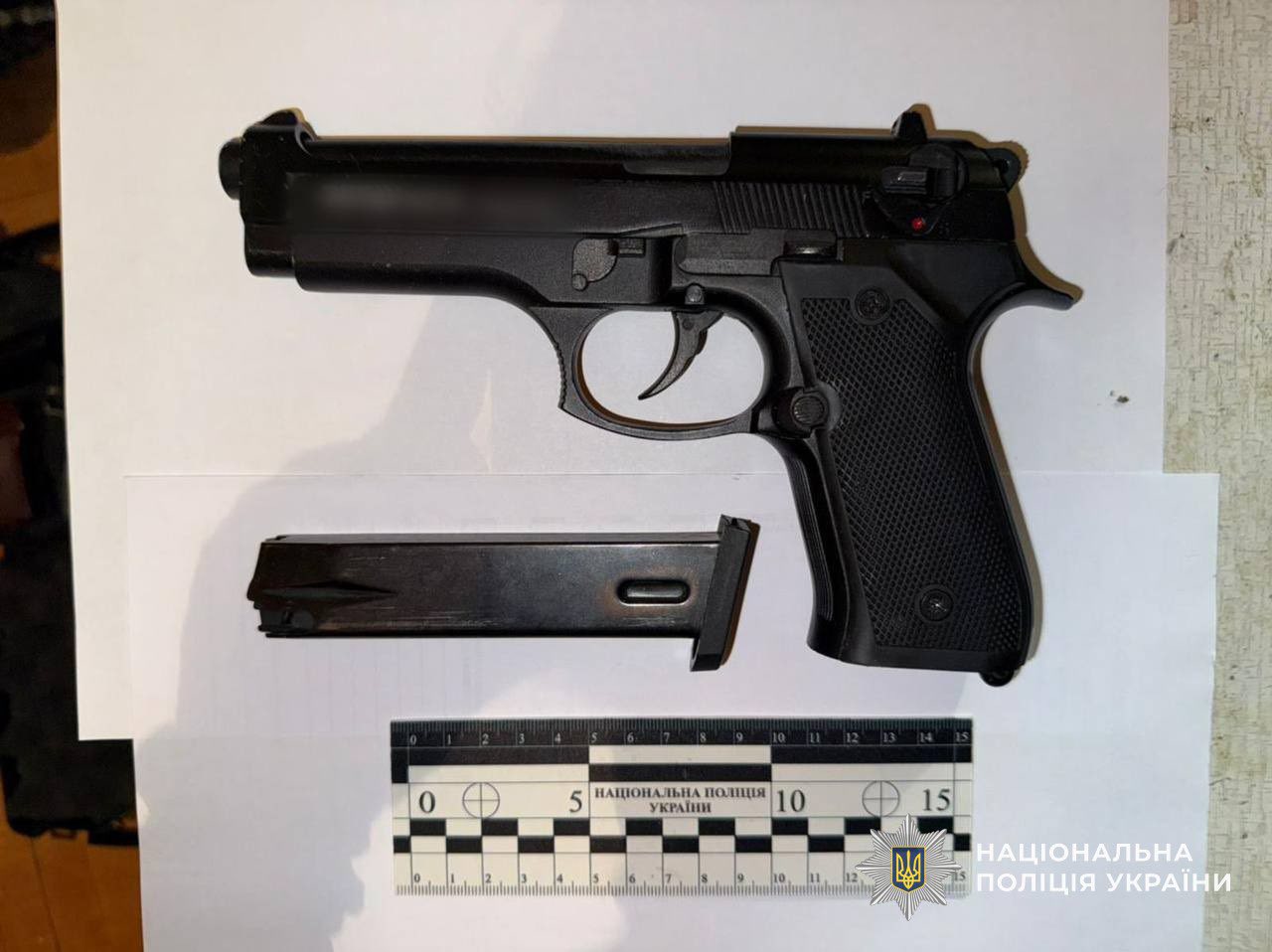 Під час огляду місця події слідчі та криміналісти вилучили з квартири пістолет із маркуванням «Retay mod 92 cal. 9mm P.A.K.», ще один пістолет у розібраному стані, а також рушницю з оптичним прицілом. Усю зброю направлять на експертні дослідження.