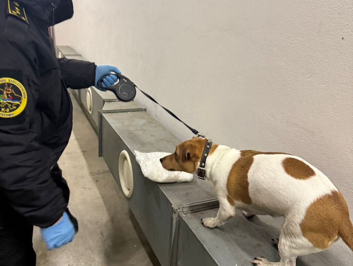 Службовий пес на кличку Річі за лічені хвилини спрацював на пасажира. Під час огляду виявили пакунок з кристалоподібною речовиною, схожою на амфетамін, вагою майже 1 кг, який був прикріплений скотчем до спини чоловіка.