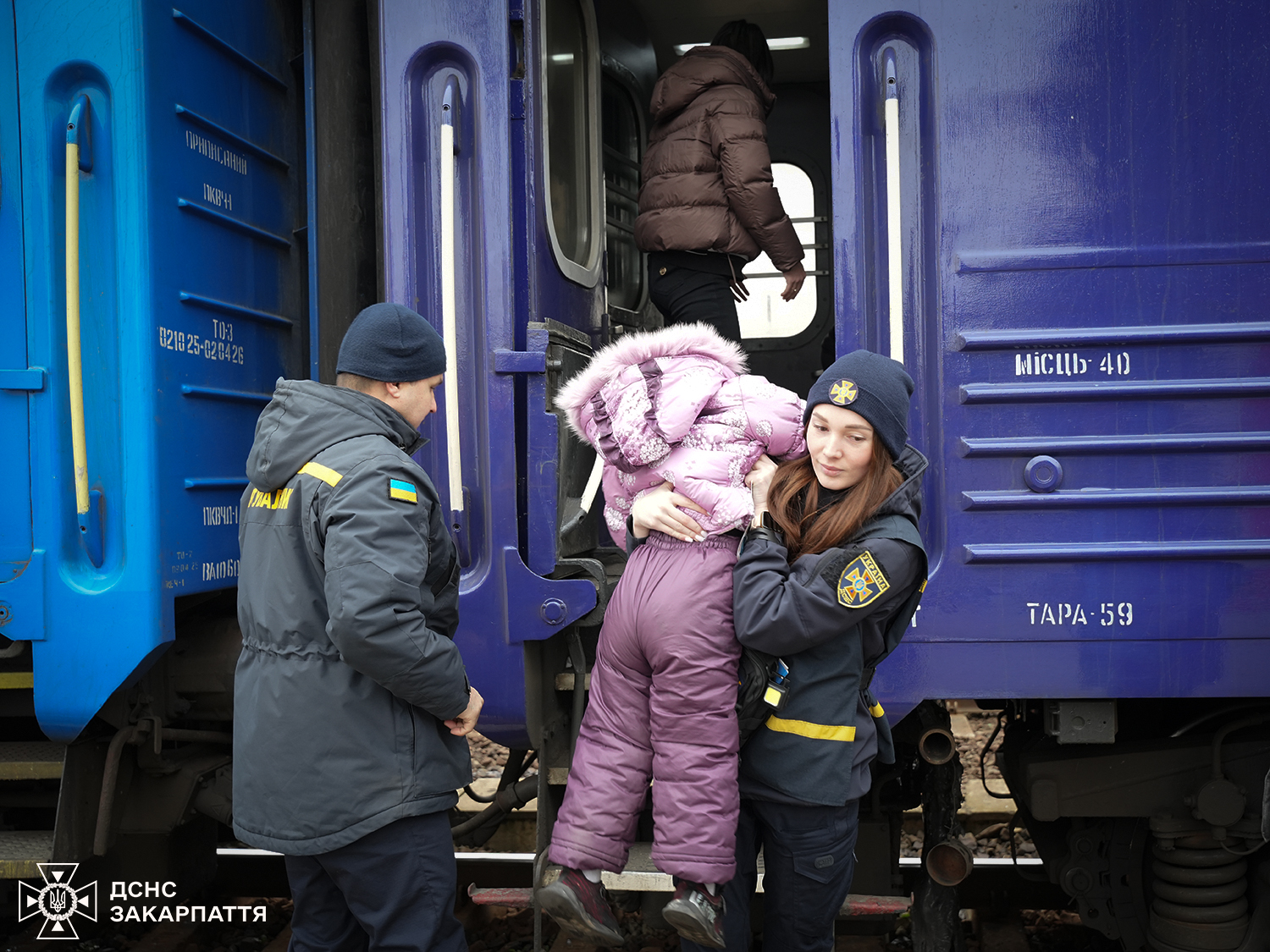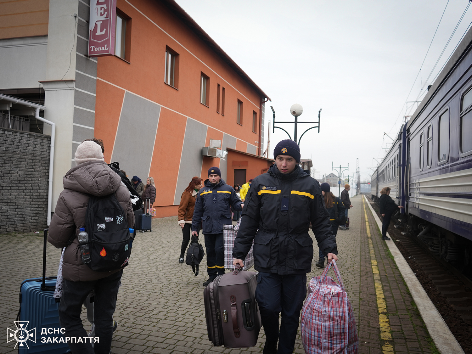 Сьогодні Мукачево зустріло черговий евакуаційний потяг із Дніпропетровщини. Цього разу до міста прибули дев’ятеро людей, більшість із яких — діти. Серед них семеро неповнолітніх: наймолодшому лише два роки, а найстаршій дівчинці — шістнадцять. На залізничному вокзалі евакуйованих зустріли рятувальники та психологи ДСНС, а також волонтери. Людям допомогли з багажем, надали необхідну психологічну підтримку та організували трансфер автобусами до місць тимчасового проживання.