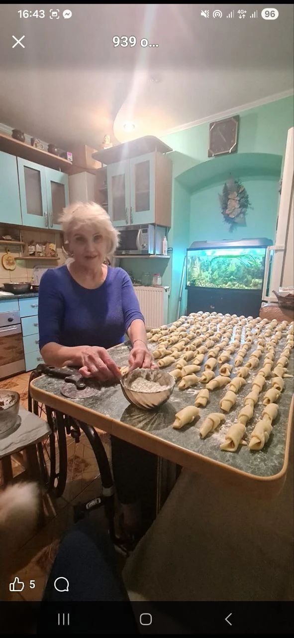 Любов Свіріденко з Чернівців попри втому, проблеми зі здоров'ям та постійні відключення світла продовжує допомагати захисникам. На Буkovині вона відома як невтомна волонтерка, яка на колісному кріслі пече смаколики та в'яже теплі шкарпетки для бійців на передовій.