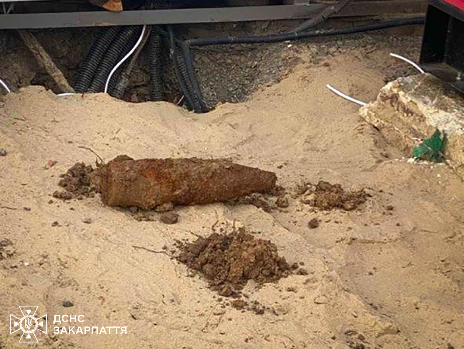 Працівники одного з підприємств під час проведення земляних робіт у місті Ужгород на вулиці Об’їзній натрапили на небезпечний предмет. Про знахідку вони повідомили до Служби порятунку і на місце прибув офіцер-рятувальник громади.