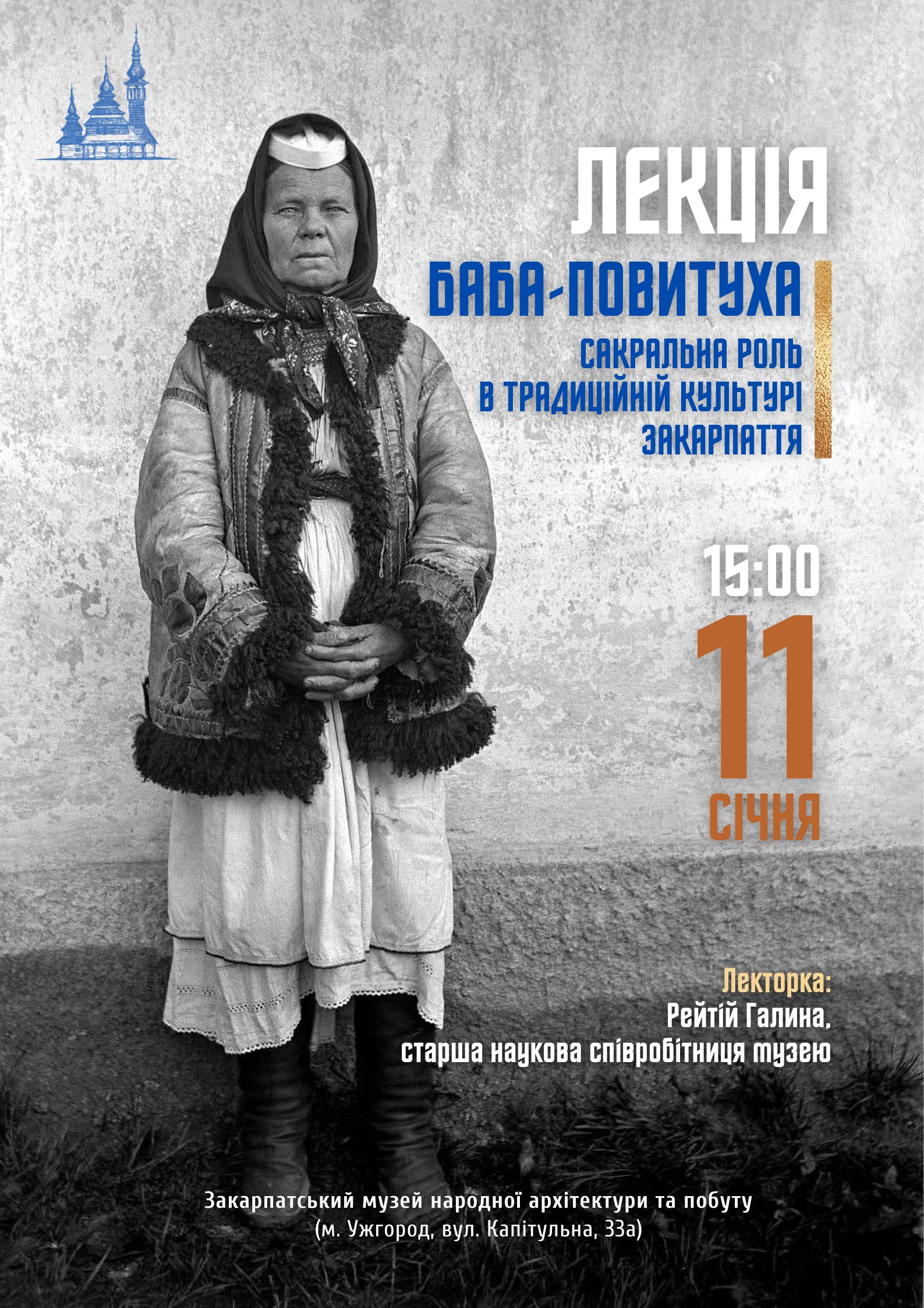 Баба-повитуха – одна з ключових постатей традиційного суспільства. Вона супроводжувала народження людини, поєднуючи практичні знання з віруваннями, обрядами та магічними уявленнями. Під час лекції, яку проведе старша наукова співробітниця музею Галина Рейтій, можна буде дізнатися про статус баби-повитухи, її функції та символічне значення в культурі Закарпаття.