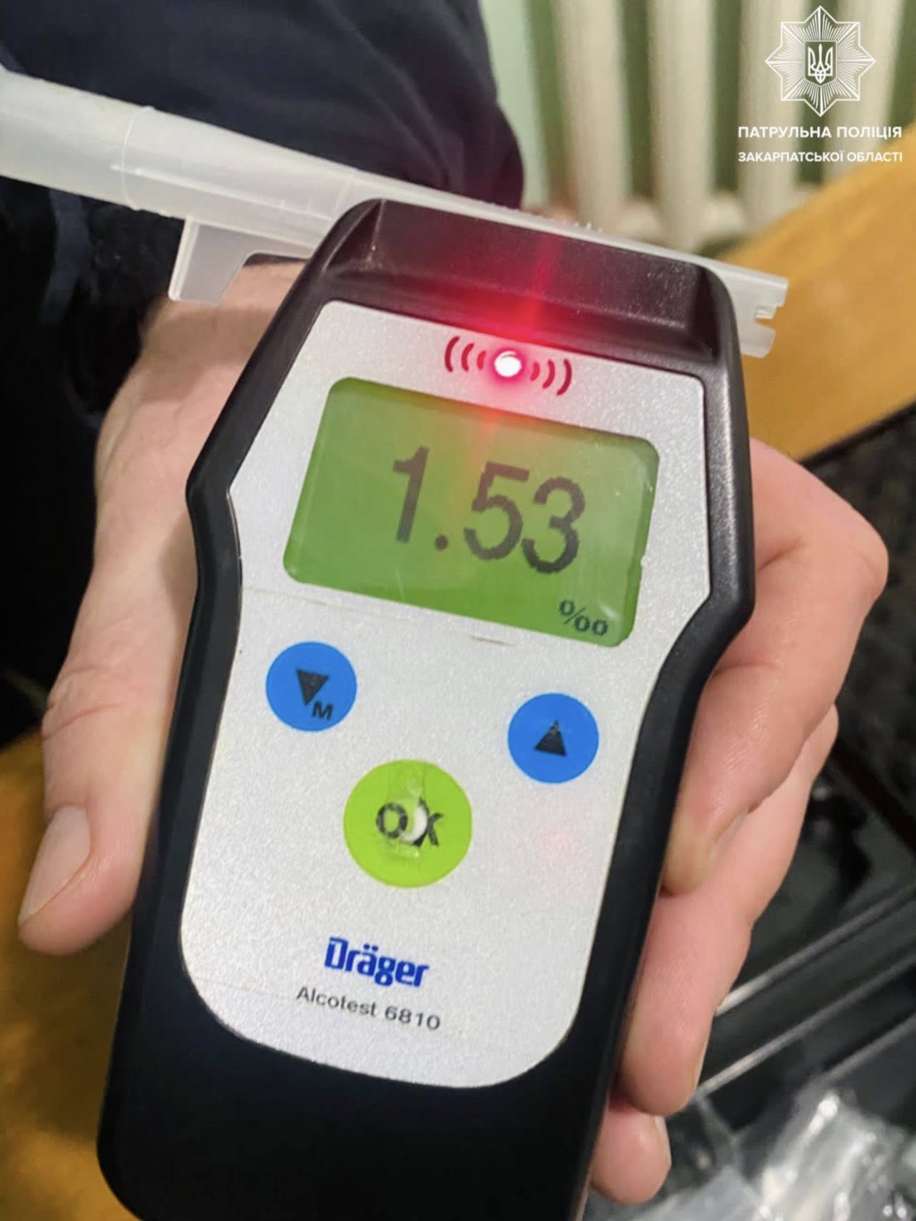 Патрульні виявили ознаки сп’яніння та підтвердили результат драгера — 1,53 ‰.