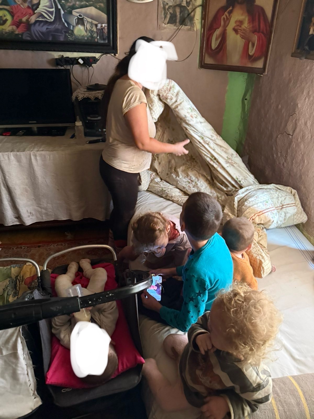 В іншій сім’ї, де четверо малолітніх дітей, помешкання виявилося холодним, брудним, із пошкодженими дверима та вікнами. У дітей були ознаки застуди. Через це було прийнято рішення негайно вилучити дітей із дому та тимчасово помістити їх до педіатричного відділення Іршавської міської лікарні для обстеження та надання необхідної допомоги.