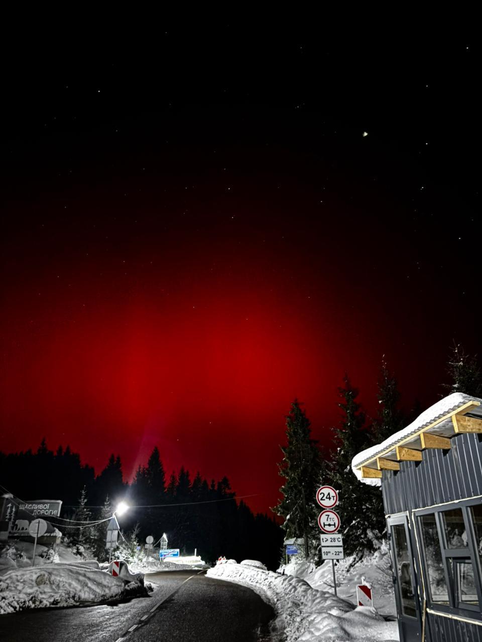 Закарпатські прикордонники зафіксували багряне полярне сяйво над Торунським перевалом (ФОТО)