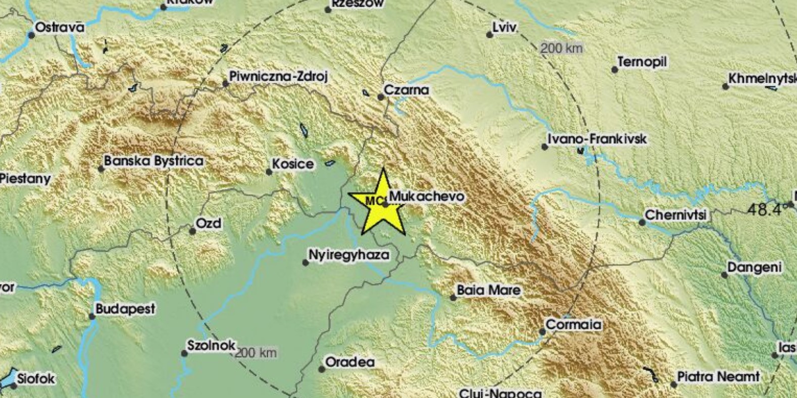 Епіцентр землетрусу був на глибині 10 км. Близькі населені пункти: Мукачево, Великі Лучки, Середнє, Косино та інші.