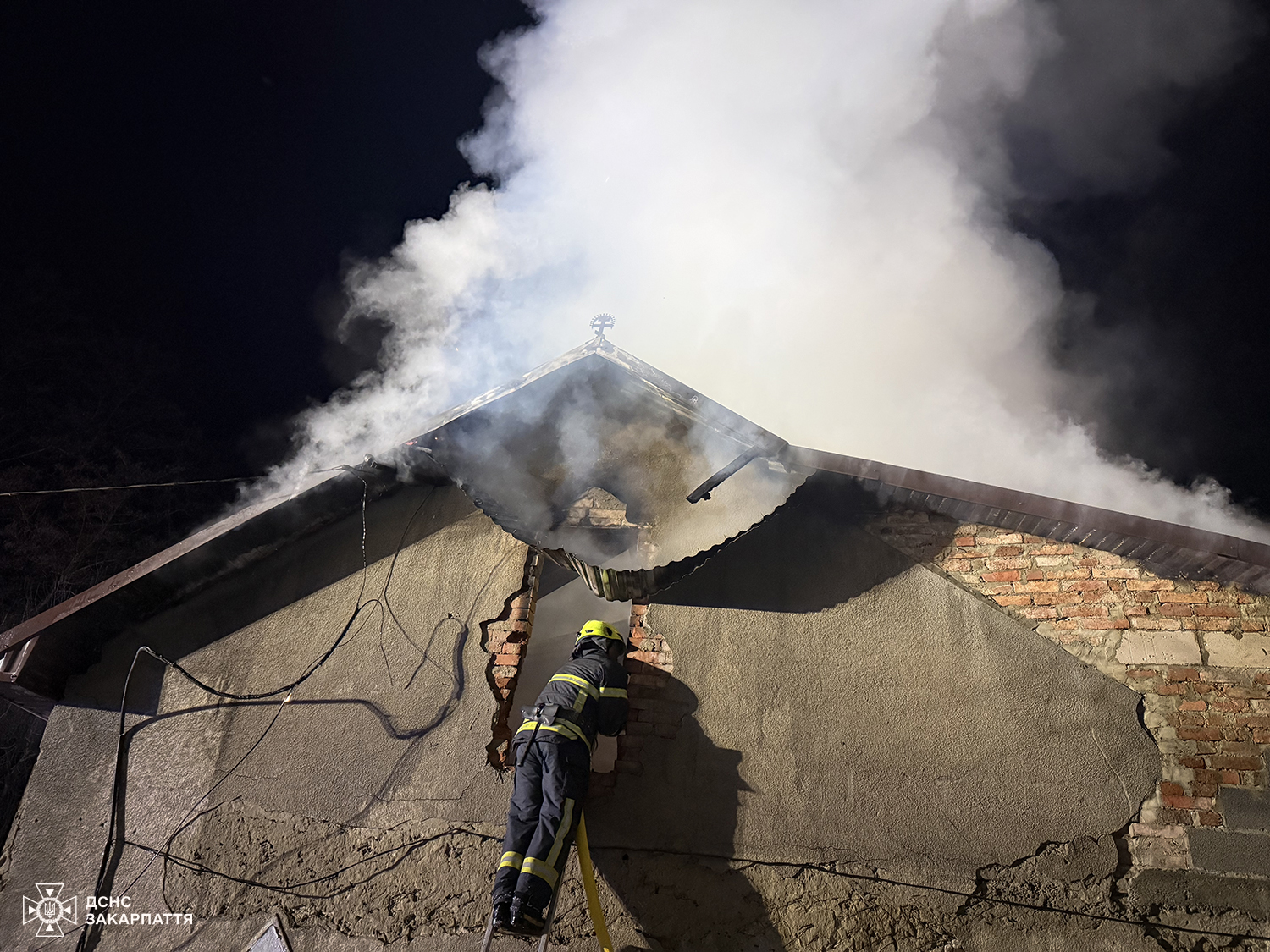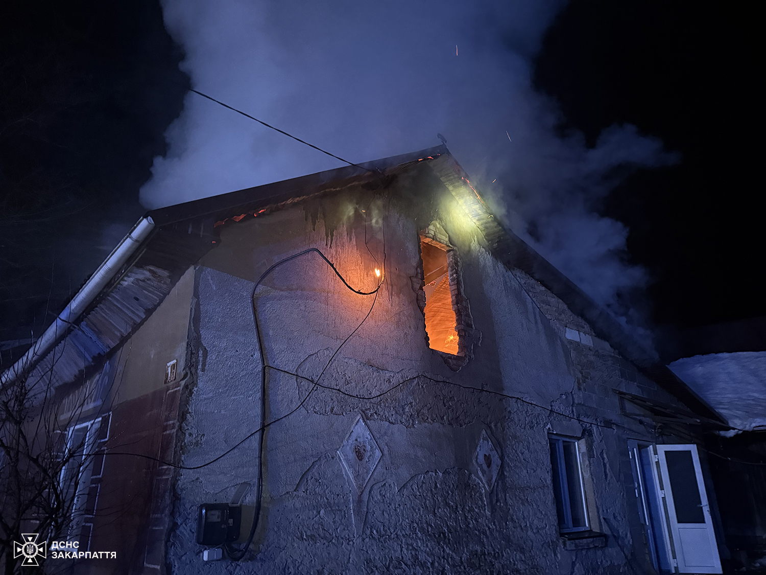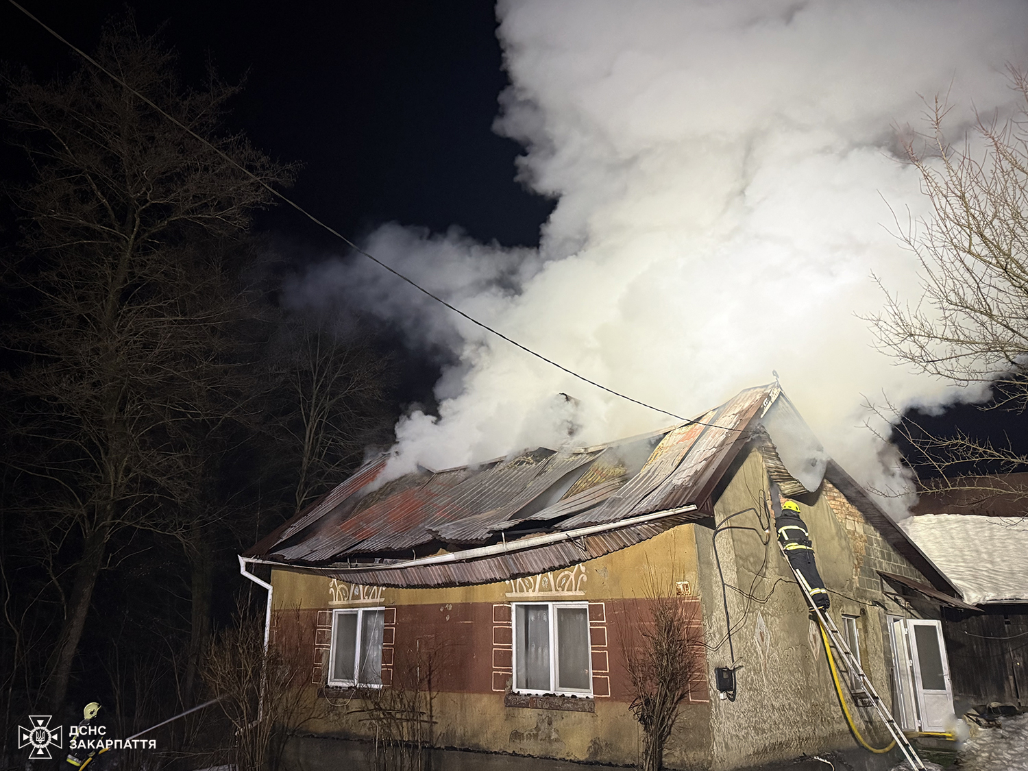 До прибуття рятувальників місцеві мешканці вивели з оселі 65-річну власницю будинку та викликали екстрені служби. На місце події прибули вогнеборці, які встановили, що дах будинку був повністю охоплений вогнем.