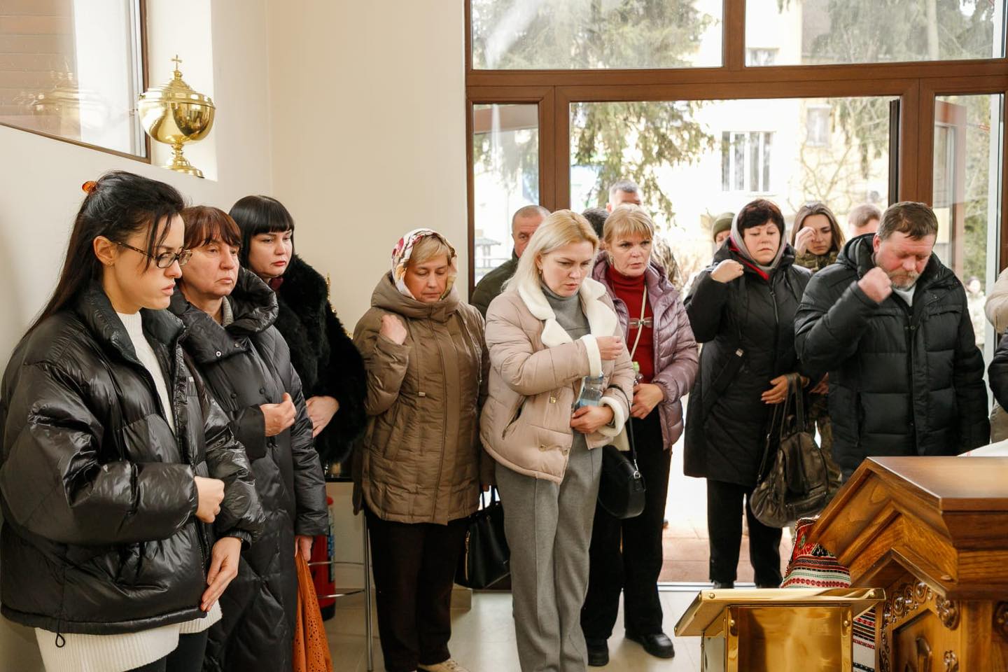 У молитві взяли участь родини зниклих та полонених прикордонників, а також керівництво та персонал військової частини.