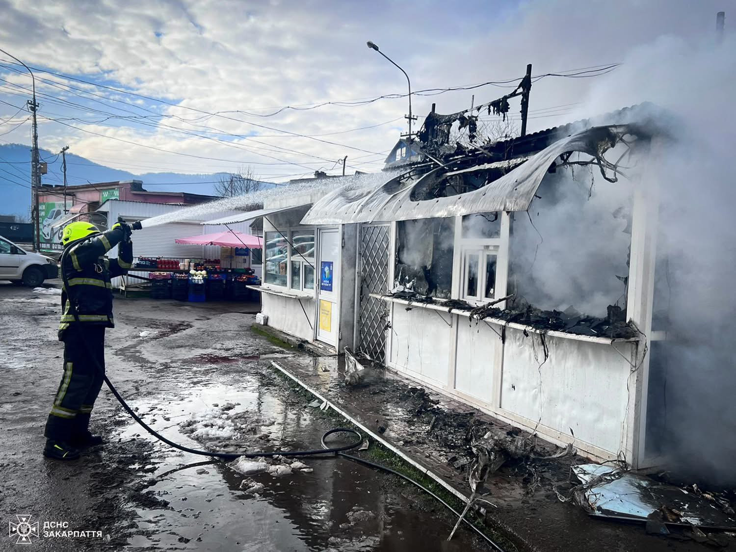 У Хусті на вулиці Івана Франка сталася пожежа в торговельному кіоску. Ще зранку 5 лютого біля прилавка вишикувалася черга за свіжими пампухами та гарячими напоями, однак уже після обіду павільйон охопив вогонь. Займання помітив таксист, який очікував на нове замовлення неподалік. Чоловік побачив задимлення всередині кіоску, одразу зателефонував на 101 та разом із небайдужими очевидцями намагався загасити полум’я вогнегасником до прибуття рятувальників.
