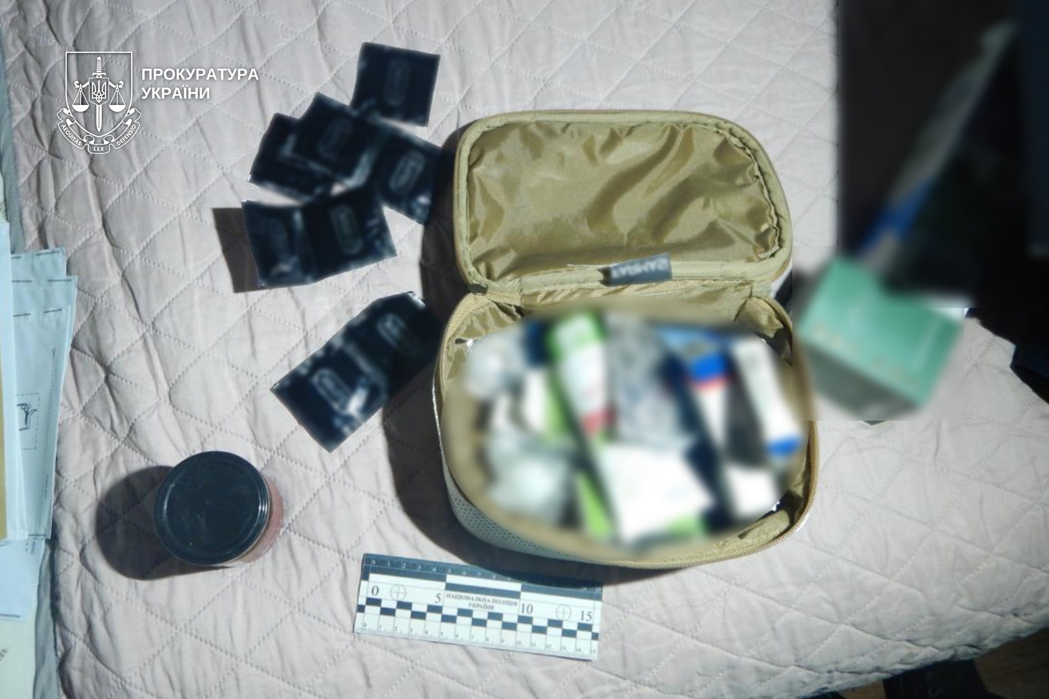 Під час проведення невідкладних слідчих дій за місцем події та тимчасового проживання чоловіка було вилучено речові докази, зокрема медичні препарати та засоби контрацепції, які можуть мати значення для досудового розслідування.