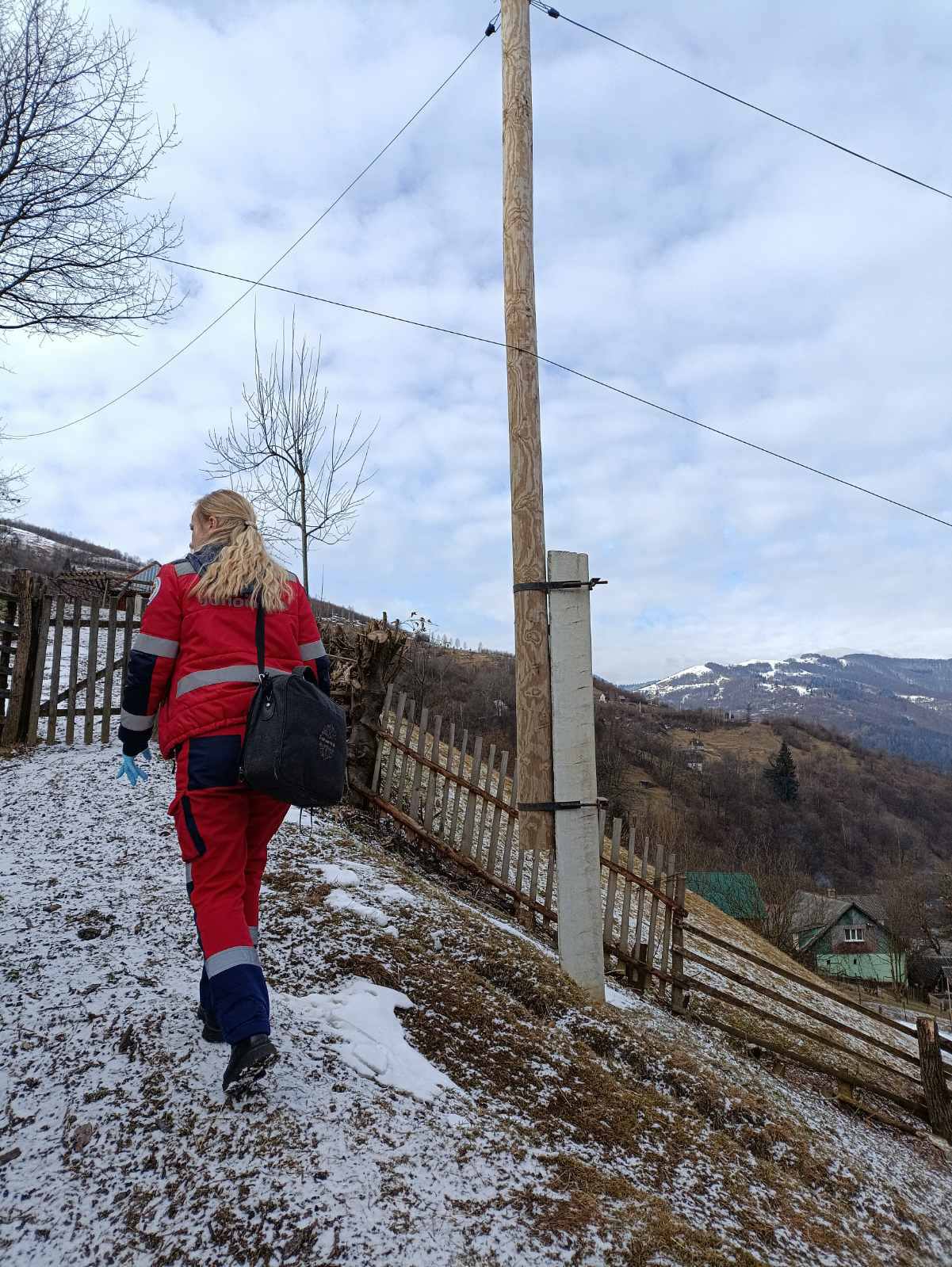 Через складний рельєф місцевості та крутий підйом автомобіль не зміг проїхати до оселі, тому медики пройшли підйом пішки з необхідним обладнанням. На місці вони оперативно оцінювали стан пацієнтки, надали допомогу та стабілізували її стан.