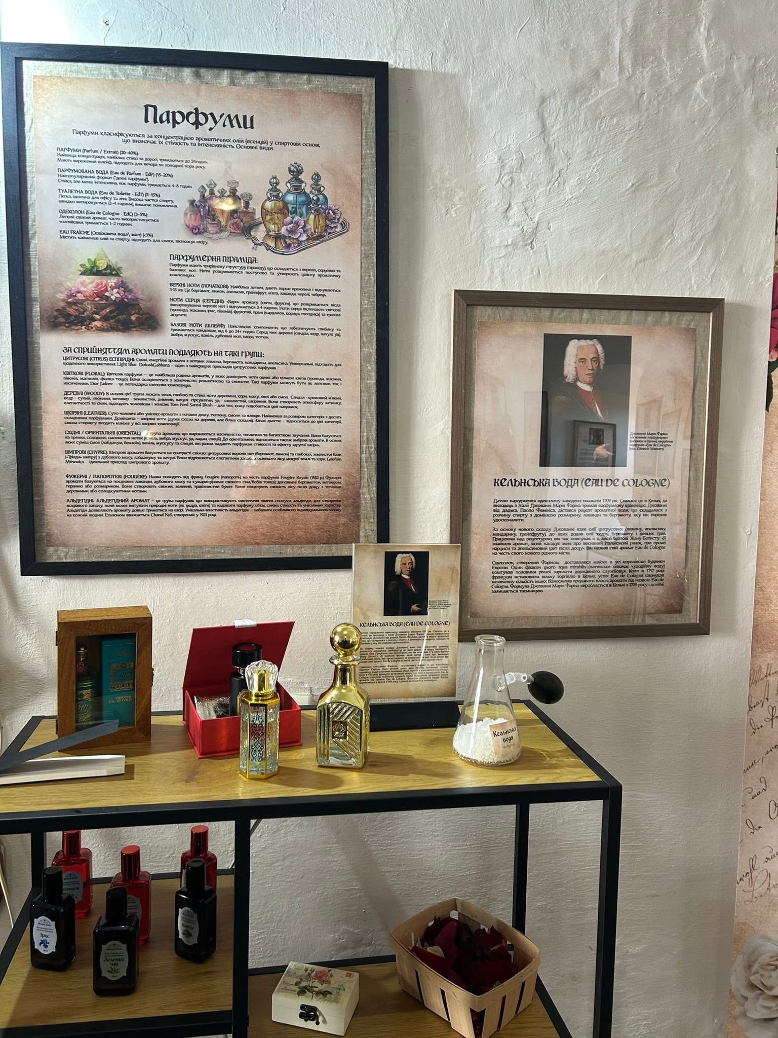 Експозиція знайомить відвідувачів із історією європейських ароматів та середньовічними традиціями парфумерного мистецтва.