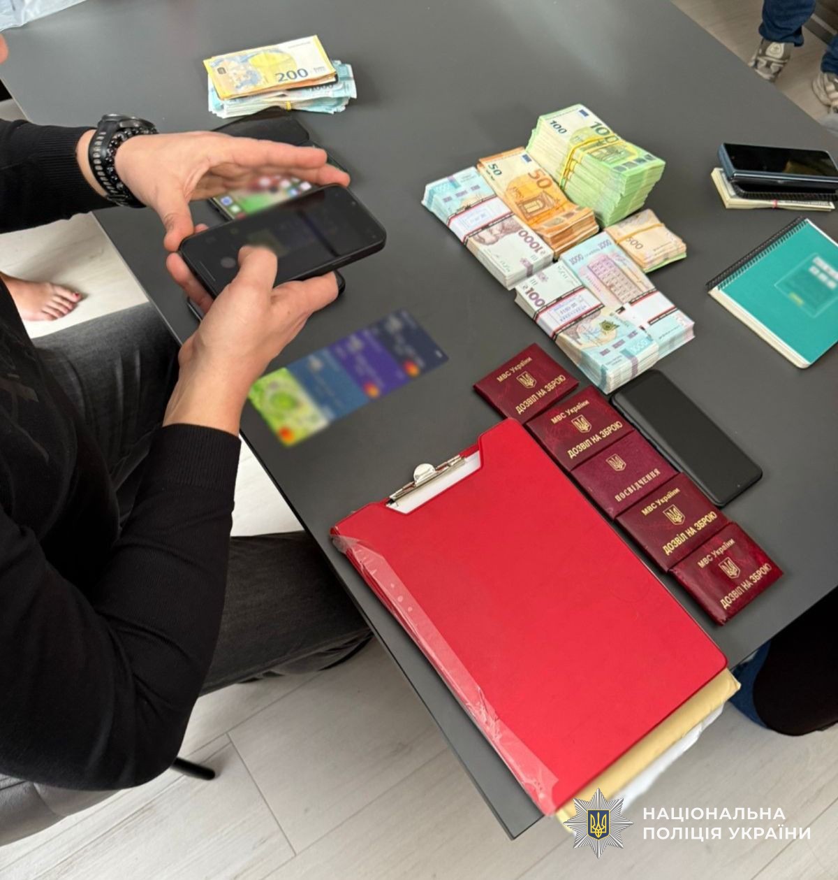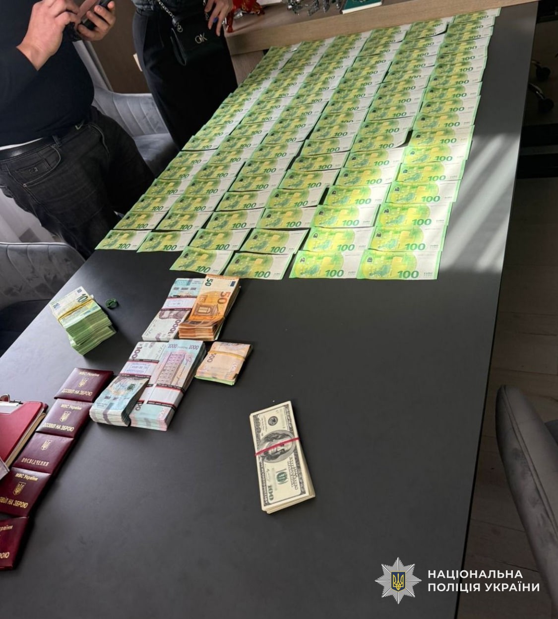 Під час обшуків правоохоронці вилучили майже кілограм наркотиків, понад 3,5 млн грн готівки, зброю, техніку для стеження та 10 автомобілів. Загальна вартість арештованого майна — майже 20 млн грн.
