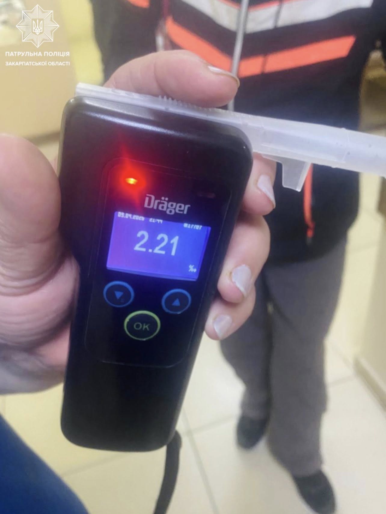 Учора на вулиці Куруців патрульні зупинили автомобіль ВАЗ за порушення правил дорожнього руху. Під час спілкування з водійкою інспектори виявили явні ознаки алкогольного сп’яніння. Жінка погодилася пройти медичний огляд, який підтвердив підозри — 2,21‰ алкоголю в крові.