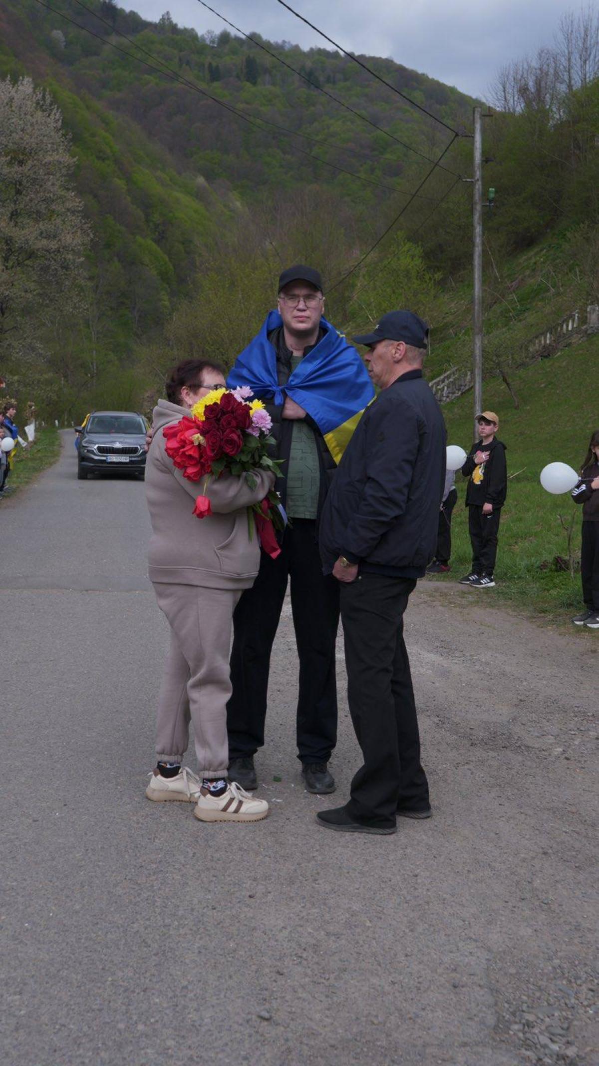 На Хустщині відбулася зворушлива зустріч із Захисником Денисом Мухіним, який після майже восьми місяців неволі повернувся додому.