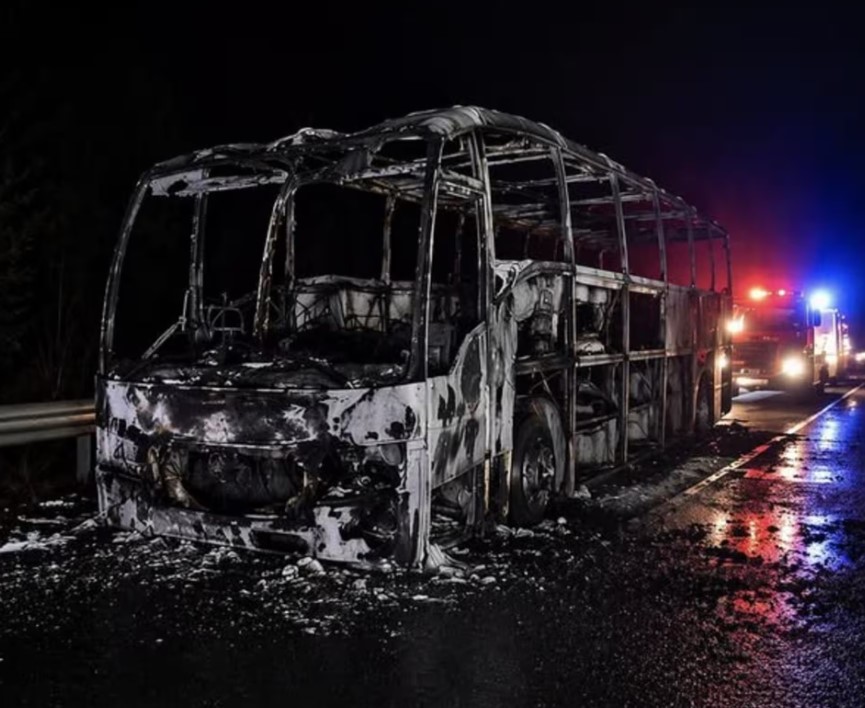 Невдовзі автобус повністю охопило полум’я. Вогонь знищив транспортний засіб майже вщент разом із валізами, особистими речами та документами пасажирів.