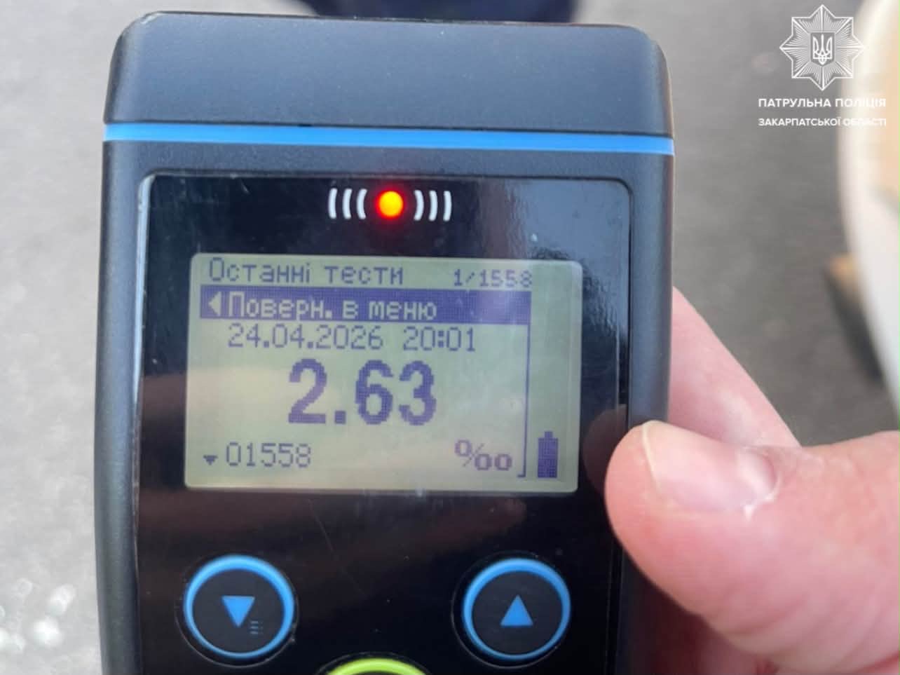 Чоловік погодився пройти огляд — результат показав 2,63 проміле алкоголю, що значно перевищує допустиму норму.