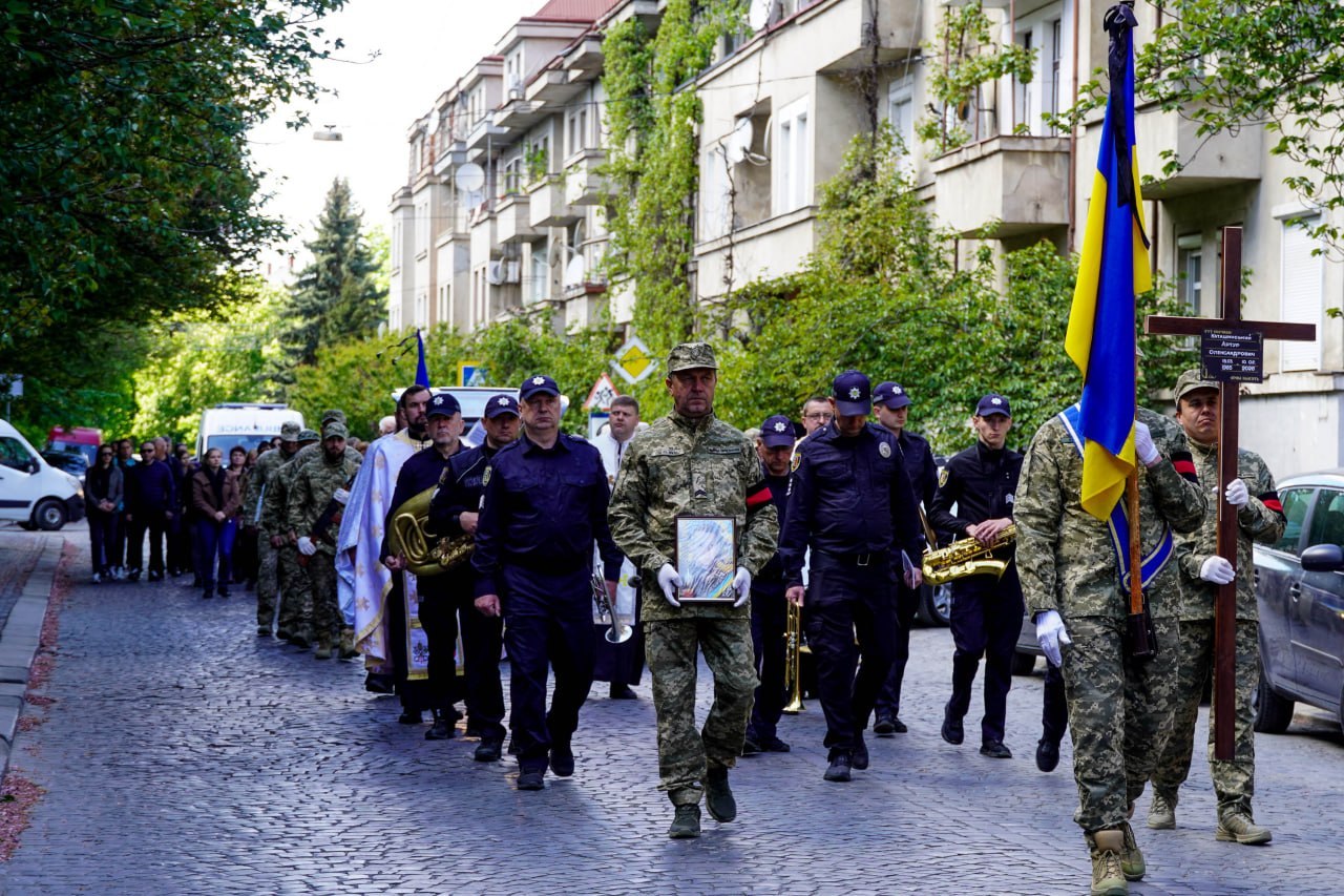 Чин похорону відбувся на площі Народній. Вшанувати пам’ять воїна прийшли рідні, близькі, друзі, побратими, представники міської влади та містяни. Після церемонії прощання жалобна хода вирушила до Пагорба Слави, де військового поховали з належними почестями. У загиблого захисника залишилася мати.